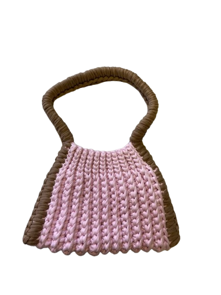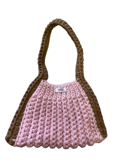 inspired by chocolate truffles, truffe pairs a soft pink body with a rich brown handle for a playful yet indulgent feel. a handcrafted crochet bag designed to feel special.